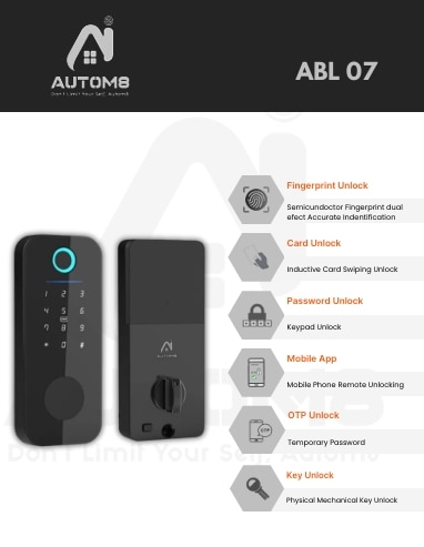 Features: 1. Fingerprint unlock : semicundoctor fingerprint dual efect accurate indentification 2. Card unlock : inductive card swiping unlock 3.Password unlock : keypad unlock 4. Mobile app : mobile phone remote unlocking 5. Otp unlock : temporary password 6. Key unlock : physical mechanical key unlock