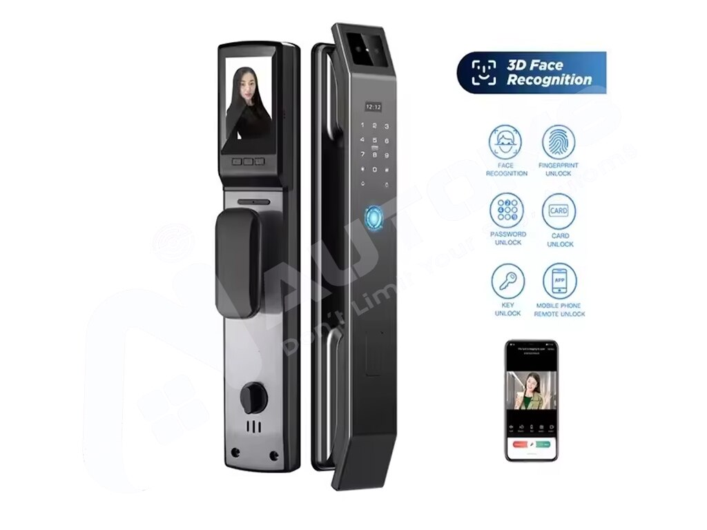 1.3D FACE UNLOCK 2.FINGERPRINT UNLOCK 3.SMART CARD UNLOCK 4.PASSWORD UNLOCK 5.MOBILE APP 6.ANYTIME VIDEO CALLING 7.KEY UNLOCK 8.OTP UNLOCK